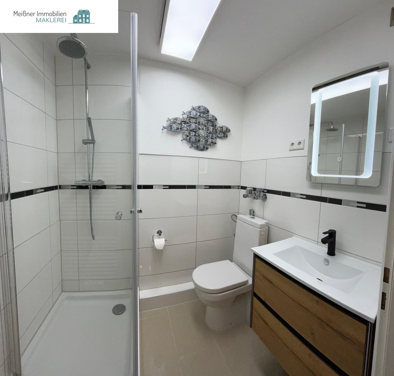 In dem modernen Badezimmer befinden sich eine Dusche und ein WC.